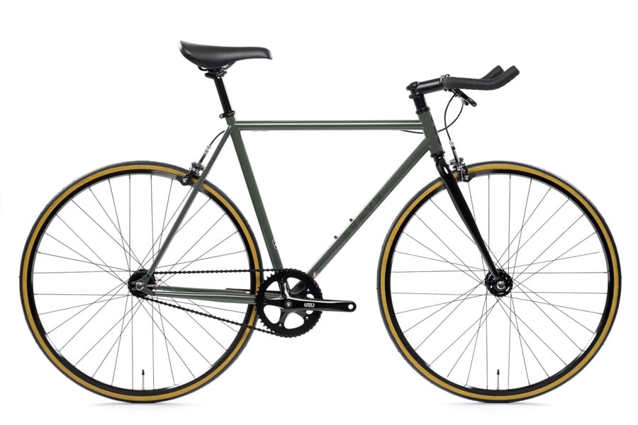 De State Bicycle Co. Army Green Fixie Fiets is een geweldige keuze voor fietsers die op zoek zijn naar een betrouwbare en stijlvolle fiets. Het frame is gemaakt van 4130 Chromoly staal met double-butted tubing, wat zorgt voor een lichtgewicht en duurzame fiets. De voorvork is ook gemaakt van Chromoly staal en biedt een soepele en responsieve rit.De fiets is uitgerust met een 68x103mm sealed cartridge bottom bracket en een 3 piece forged 6061 crank, wat zorgt voor een efficiënte krachtoverbrenging en een soepele pedaalbeweging. De Wellgo alloy pedalen zijn inbegrepen, maar toe-clips zijn niet inbegrepen.De fiets heeft een 32H x 14G high flange naaf met een achter flip-flop hub (16T) en “Lo-Pro” wielen met sealed bearing naven. De KMC z410 ketting zorgt voor een soepele en betrouwbare overbrenging van de kracht. Het zadel is gemaakt van PU met stalen rails en biedt comfort en ondersteuning tijdens het rijden.De State Bicycle Co. Army Green Fixie Fiets wordt geleverd met pedalen en remmen. De dual pivot forged alloy remmen bieden betrouwbare remkracht en de fiets weegt slechts 8,9 kg (gewicht genomen van de fiets in maat 550mm, zonder pedalen of remmen). Met zijn stijlvolle army green kleur en hoogwaardige componenten is deze fiets een geweldige keuze voor elke fietser die op zoek is naar een betrouwbare en stijlvolle fiets. (EAN: 789555074765)